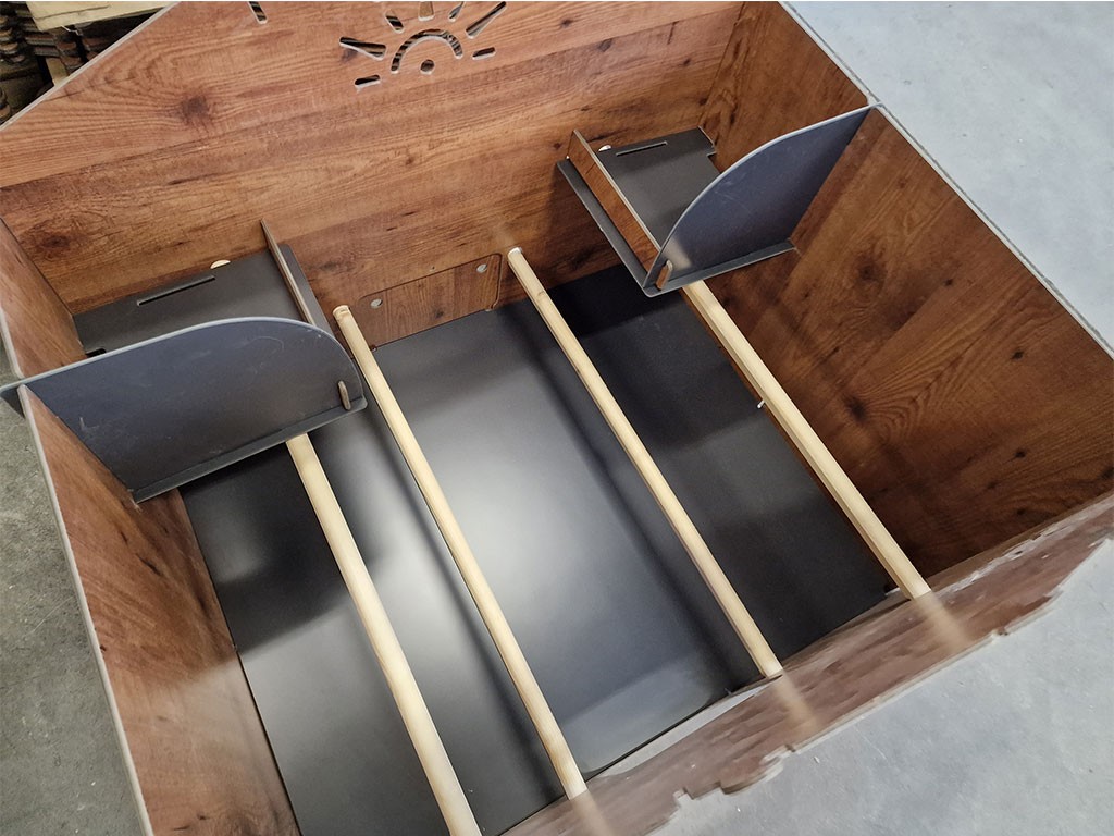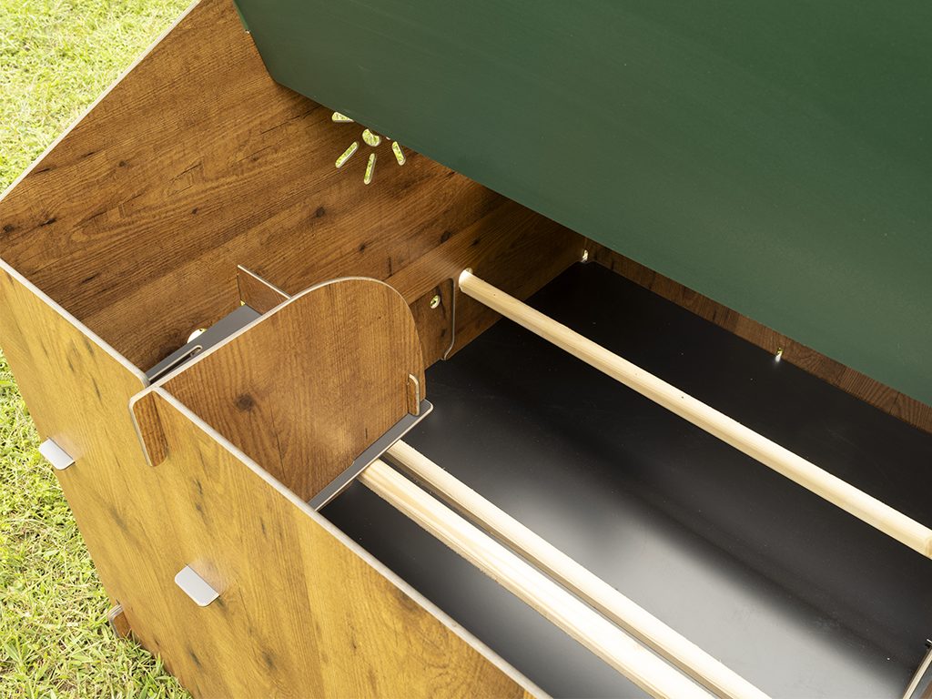 Kurnik wyposażony jest w cztery grzędy, na których kury mogą odpocząć w nocy. W kurniku znajdują się również dwie podwyższone grzędy wewnętrzne , w których kury będą miały wystarczająco dużo miejsca i spokoju do znoszenia jaj. Zbieranie jaj będzie bardzo łatwe , ponieważ wystarczy podnieść dach . W zestawie znajdują się drzwi bezpieczeństwa Polly Defender , do których można łatwo podłączyć automatyczne otwieranie kurnika, jeśli jest to wymagane. Automatyczne otwieranie i zamykanie kurnika nie jest zawarte w zestawie!