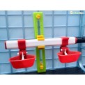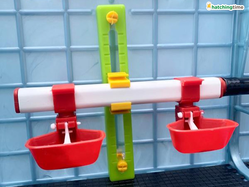Kurnik wyposażony jest w dwa poidła w kształcie kapelusza na każdym piętrze na pierwsze dni życia piskląt oraz dwa poidła smoczkowe z regulacją wysokości , które zapewniają bezproblemowy i higieniczny sposób pojenia piskląt w klatce. Poidła smoczkowe posiadają również dodatkowe miseczki na wodę , które tworzą wysokiej jakości poidła automatyczne i zapobiegają ich zamoczeniu przez pisklęta. Woda do poideł automatycznych jest dostarczana z przezroczystego zbiornika za pomocą systemu węży. Zbiornik zapewnia doskonały podgląd aktualnego poziomu wody , a jego pokrywa chroni wodę przed zanieczyszczeniem i umożliwia łatwe uzupełnianie w razie potrzeby.