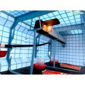 Kurnik do hodowli drobiu, odpowiedni do hodowli od 120 do 135 kurcząt, z opatentowaną technologią Comfortplast , o wymiarach 104 x 64 x 119 cm . Jest to dwupoziomowa klatka z 3 komorami , wyposażona w listwę grzewczą z regulowanym termostatem i wyjściem na żarówkę , karmniki z kratką zapobiegającą marnowaniu paszy oraz poidła z dopływem wody z 8-litrowego zbiornika .