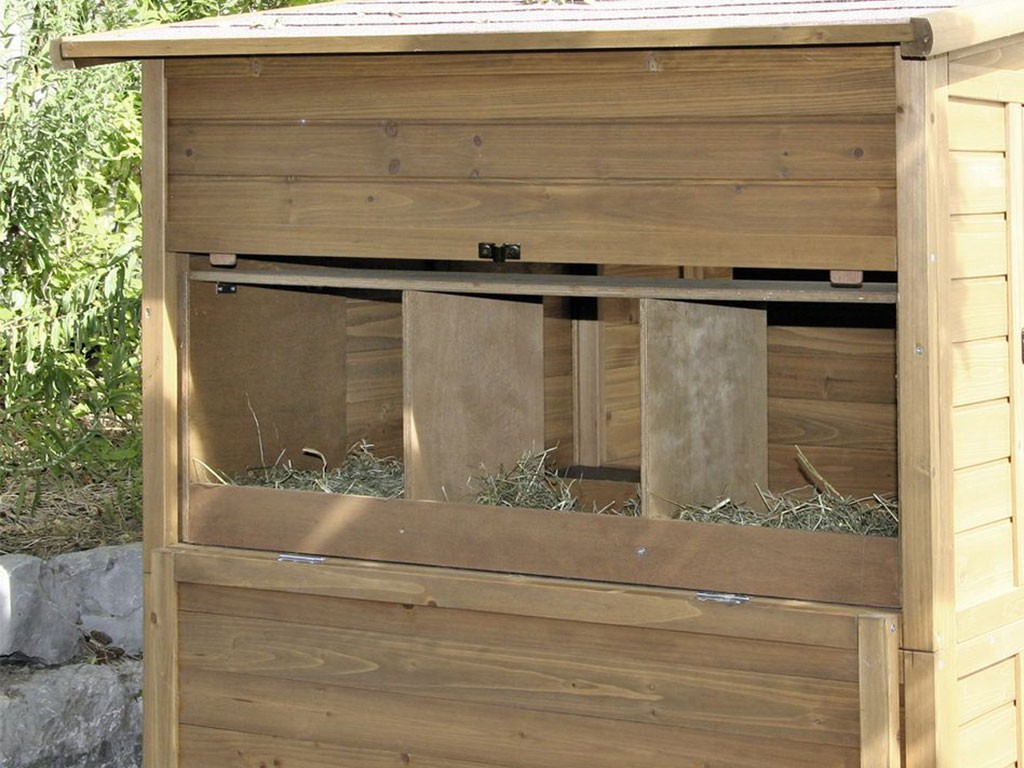 Kurnik wyposażony jest w dwie grzędy, na których kury mogą odpocząć. W kurniku znajduje się również 6 gniazd niosek , w których kury mają wystarczająco dużo miejsca i spokoju, aby znosić jaja. Zbieranie jaj będzie bardzo łatwe , ponieważ wystarczy otworzyć dwoje bocznych drzwi gniazd niosek. Kurnik posiada również stopnie ułatwiające przemieszczanie się między piętrami.