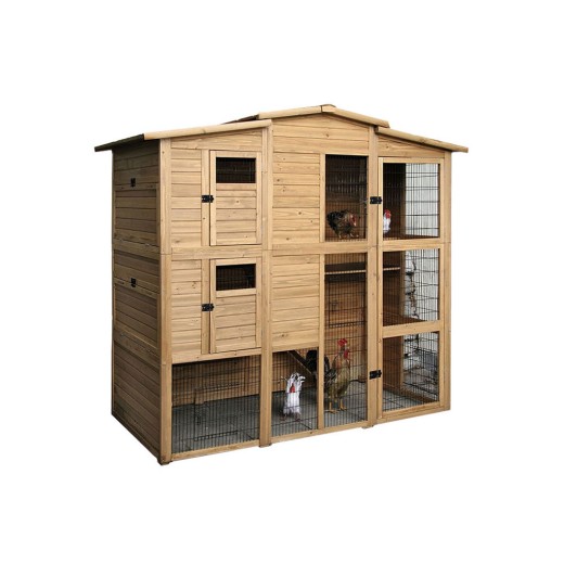 Dwupiętrowy kurnik dla 6-10 kur o wymiarach 222x115x200 cm. Idealny kurnik, wyposażony w dwie grzędy , sześć gniazd niosek oraz sześć wejść do kurnika i wybiegu, co ułatwia czyszczenie. Kurnik wykonany jest z lakierowanego drewna , co zapewnia stabilną konstrukcję.