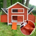 Kurnik jest zabezpieczony podkładem ochronnym. Aby przedłużyć jego żywotność, zalecamy regularną wymianę powłoki ochronnej. Kurnik powinien być idealnie umiejscowiony w miejscu chronionym przed niekorzystnymi warunkami atmosferycznymi, takimi jak deszcz, śnieg, silne nasłonecznienie i wiatr.