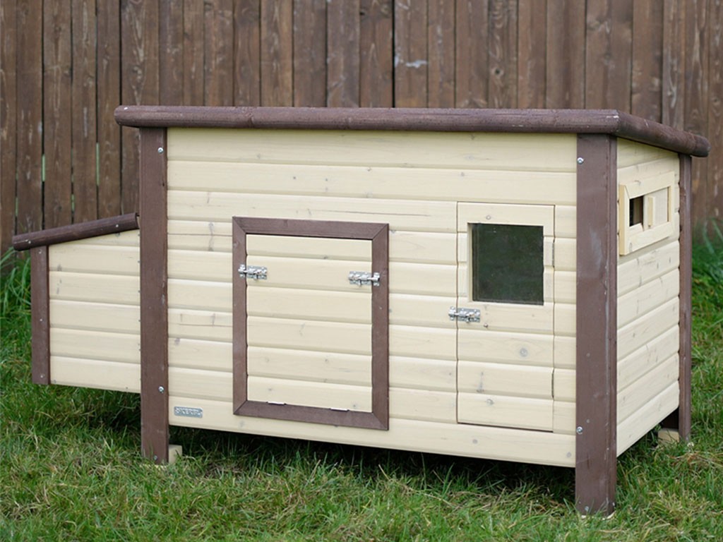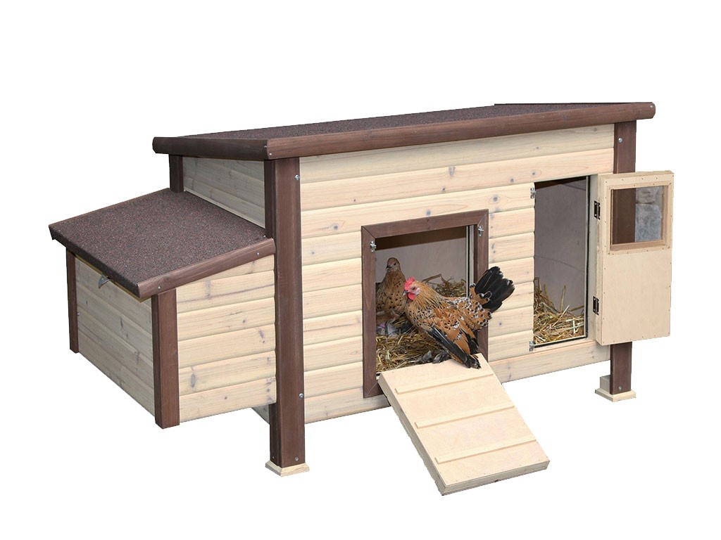 Kurnik wykonany jest z drewna z powłoką ochronną, którą należy regularnie wymieniać , aby wydłużyć żywotność kurnika. Podwójne ściany kurnika o grubości 3,5 cm zawierają warstwę izolacji , która chroni kury przed zimnem z zewnątrz, a jednocześnie nie pozwala na utratę ciepła z kurnika. Dno kurnika zawiera wbudowany element grzejny , który nagrzewa powietrze w kurniku do temperatury 30°C i ogrzewa je do temperatury od 6 do 13°C. System ogrzewania kurnika posiada termostat , który włącza ogrzewanie, gdy temperatura powietrza wewnątrz kurnika spadnie poniżej 6°C i automatycznie wyłącza się przy temperaturze powietrza 13°C. Zapewnia to optymalną temperaturę dla kur w kurniku i zapobiega jego zamarzaniu.