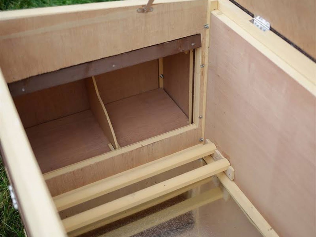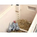 Kurnik wyposażony jest w zewnętrzne gniazdo niosek z dwoma komorami i uchylnym dachem. Ułatwia to i przyspiesza zbieranie jaj. Wewnątrz kurnika znajdują się trzy grzędy do odpoczynku .