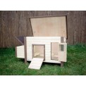Ocieplany, ogrzewany kurnik dla 5 kur, odpowiedni również do hodowli, termostat ustawiony na 6-13°C, wbudowane spirale grzewcze w podłodze, zasilacz sieciowy 230 V , napięcie 24 V, podwójne ściany z izolacją o grubości 3,5 cm, ocynkowane dno ułatwiające czyszczenie, gniazdo z dwiema komorami, 3 grzędy, przesuwane okno zapewniające cyrkulację powietrza, uchylny dach bitumiczny, drewno zabezpieczone farbą ochronną, wymiary 146x74x82 cm.