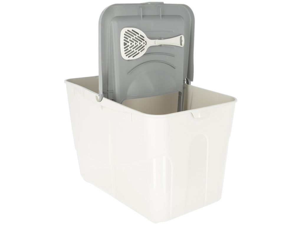 Czyszczenie tej kuwety dla kota zostało zaprojektowane tak, aby było jak najłatwiejsze i najwygodniejsze. Zdejmowana pokrywa zapewnia łatwy dostęp do wszystkich części kuwety, umożliwiając szybkie i dokładne czyszczenie. Rowkowana pokrywa znacznie ogranicza wysypywanie się żwirku , dzięki czemu nie trzeba tak często czyścić obszaru wokół kuwety. Wysokie ścianki utrzymują brud wewnątrz, co jeszcze bardziej usprawnia czyszczenie. Dzięki dołączonej praktycznej łopatce , usuwanie nieczystości zajmuje chwilę, oszczędzając czas i wysiłek.