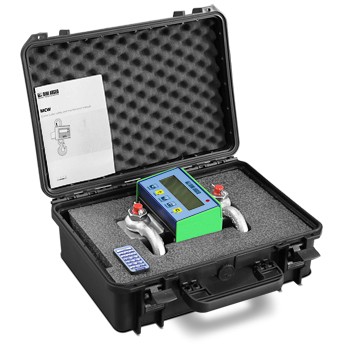Łatwa w obsłudze i niezawodna profesjonalna cyfrowa waga dźwigowa do ważenia w warunkach przemysłowych, wyposażona w ochronną walizkę transportową.