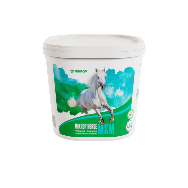 HORSE MSM to składnik paszy przeznaczony dla koni. MSM, czyli metylosulfonylometan, to organiczny związek siarki, który pomaga w problemach układu mięśniowo-szkieletowego. Przeznaczony jest dla koni rekreacyjnych i sportowych. MSM to naturalny, przeciwzapalny składnik paszy, który korzystnie wpływa na stawy, więzadła i ścięgna. MSM poprawia kondycję fizyczną konia, a jego właściwości wspomagają regenerację po wysiłku i gojenie się ran. Dzięki swojemu składowi wspomaga wzmocnienie ścięgien i więzadeł. MSM jest odpowiedni dla koni w każdym wieku. Ponadto MSM nie zawiera żadnych substancji zabronionych.