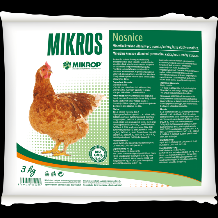 Mieszanka paszowa uzupełniająca mineralna dla kur niosek, kaczek, gęsi i indyków. Przeznaczona do uzupełniania dawek pokarmowych.