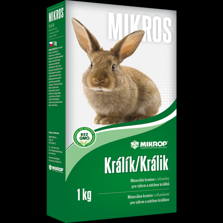 Pokarm uzupełniający, mineralno-witaminowy MIKROS RABBIT przeznaczony jest dla wszystkich gatunków królików domowych i miniaturowych, dzięki swojemu zbilansowanemu składowi.
