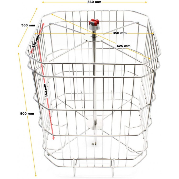 Obrotowy kosz pozwala na włożenie 4 ramek. Można włożyć nie tylko ramki w rozmiarze Zander, ale także ramki zgodne ze standardem DIN. Maksymalny rozmiar ramki: 440 x 250 mm.