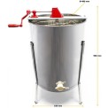 Ta miodarka ma solidną konstrukcję i jest bardzo wytrzymała. Stoi na 3 nogach. Wszystkie części mające kontakt z miodem są wykonane ze stali nierdzewnej i posiadają atest spożywczy.