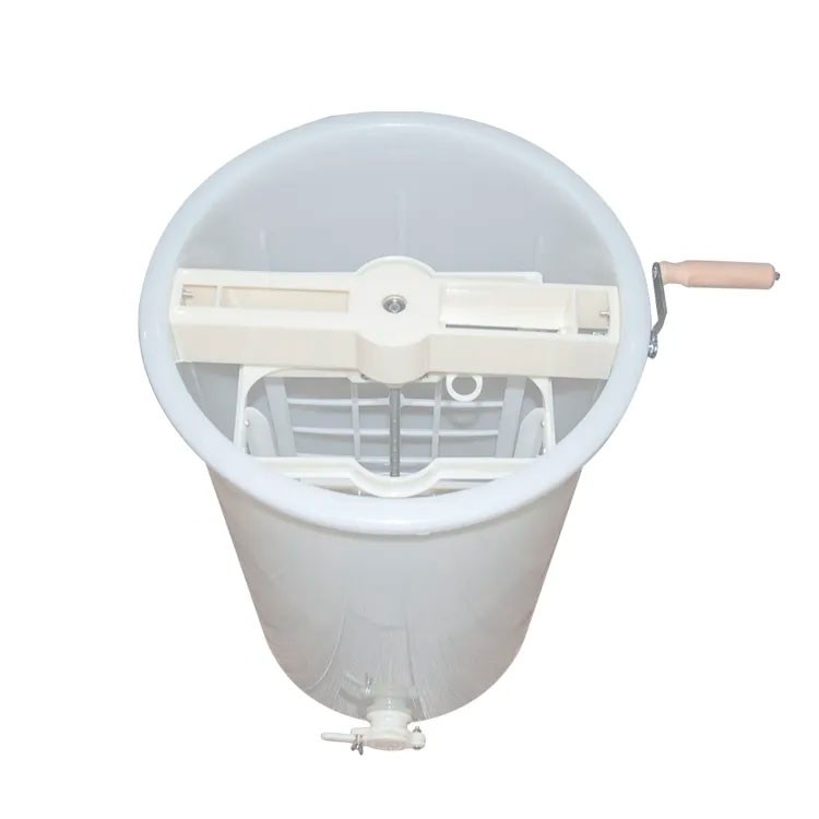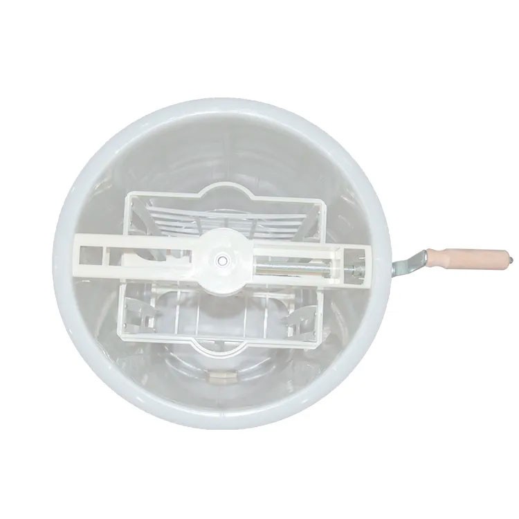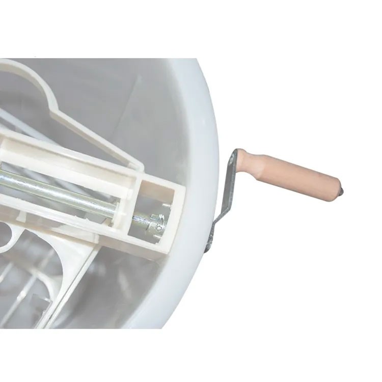 Pręt łączy korbę ręczną z obracającym się koszem. Dzięki płynnej pracy korby, wewnętrzny kosz jest bardzo łatwo wprawiany w ruch. Dzięki sile odśrodkowej miód jest wtryskiwany z plastrów na ściankę kosza. Za pomocą kurka spustowego miód można teraz zebrać do odpowiedniego pojemnika.