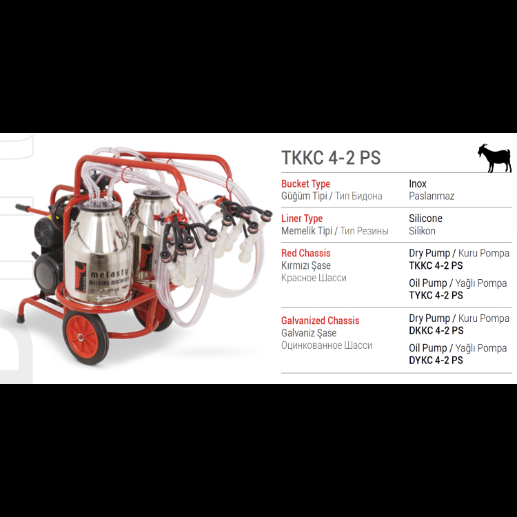 TYKC 4-2 PS To najwyższej klasy mobilna dojarka dla kóz, zaprojektowana z myślą o wymagających rolnikach poszukujących wydajnego i niezawodnego rozwiązania do dojenia. Model ten wyposażony jest w pompę olejową , która zapewnia wyjątkową wydajność i długą żywotność, gwarantując stabilną pracę nawet przy intensywnym użytkowaniu. Dzięki silikonowym gumom strzykowym dojenie jest delikatne dla zwierząt i niezwykle wydajne. Silikonowe gumy strzykowe zostały zaprojektowane tak, aby maksymalnie dopasowywały się do kształtu strzyków, zapewniając komfort doju i minimalizując ryzyko uszkodzenia strzyków . Dodatkowo, dojarka dla kóz wyposażona jest w pompę próżniową o przepływie powietrza 210-230 l/min , która zapewnia optymalne ssanie i szybkie przetwarzanie mleka.