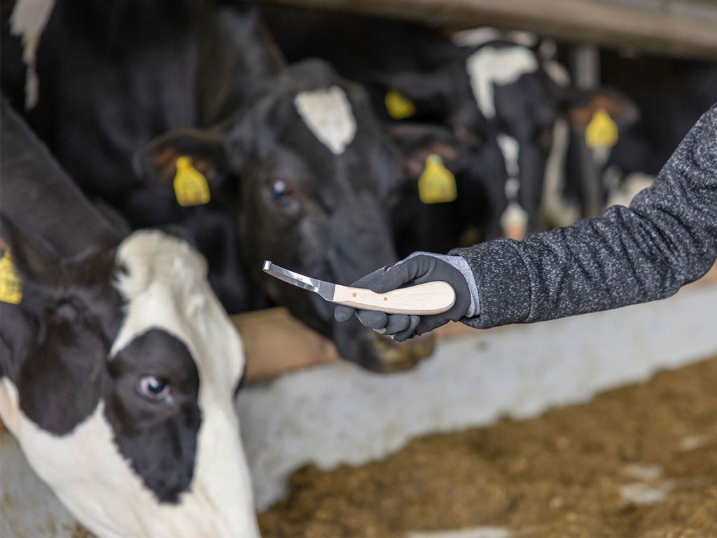 Nóż do kopyt ekspercki, do pielęgnacji bydła, owiec i kóz, jednoostrzowy, prawostronny , długość ostrza 80 mm , szerokość ostrza 13 mm , długość cięcia 65 mm .