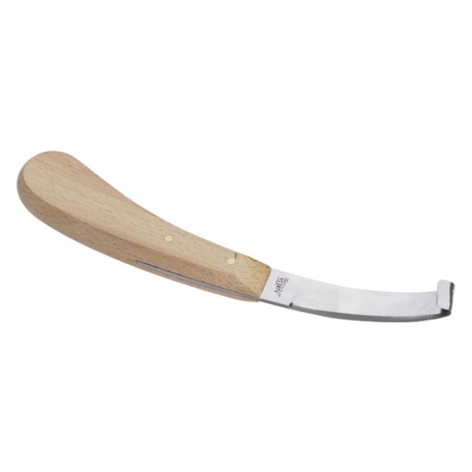 Nóż do kopyt, do pielęgnacji bydła, owiec i kóz, jednoostrzowy, lewy , długość ostrza 83 mm , szerokość ostrza 18 mm , długość cięcia 69 mm .