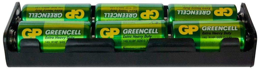 Zasilanie: | 6 szt. baterii serii „C” (R14, „średnie pojedyncze ogniwa”). |