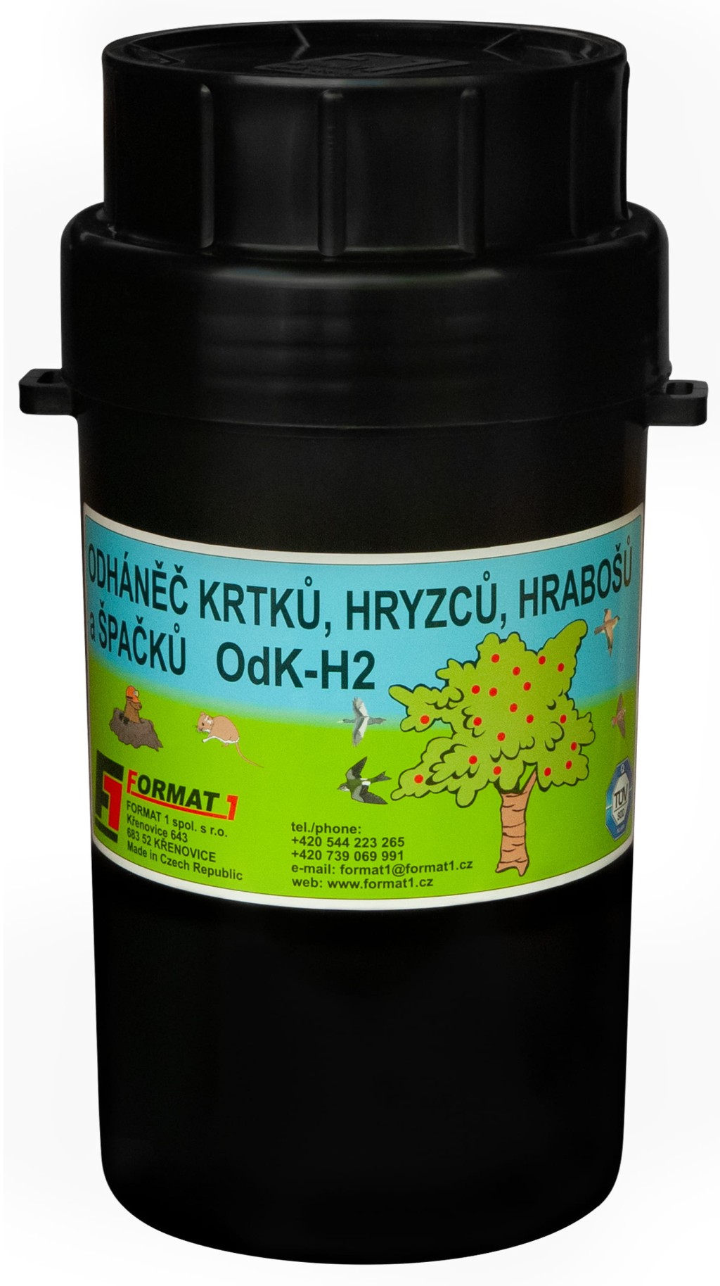 Elektroniczny, akustyczny odstraszacz kretów , łasic i nornic. To produkt w pełni czeski, z długą tradycją na rynku (od 1991 roku), produkowany bezpośrednio w naszej firmie FORMAT1 spol. s ro. Wersja OdKH2 to drugi, ulepszony model popularnej serii odstraszaczy kretów OdK-H. Ten odstraszacz kretów jest bardzo niezawodny i wydajny, sprawdzony przez wielu klientów od ponad 29 lat. Nieszkodliwy dla ludzi i zwierząt domowych.
