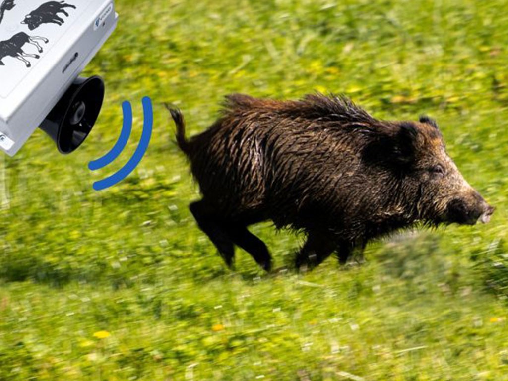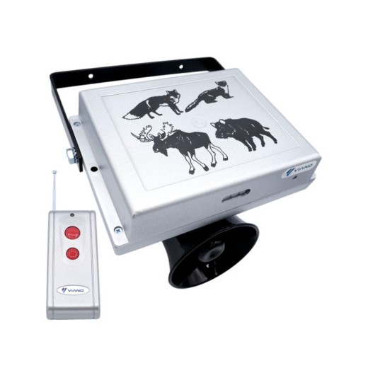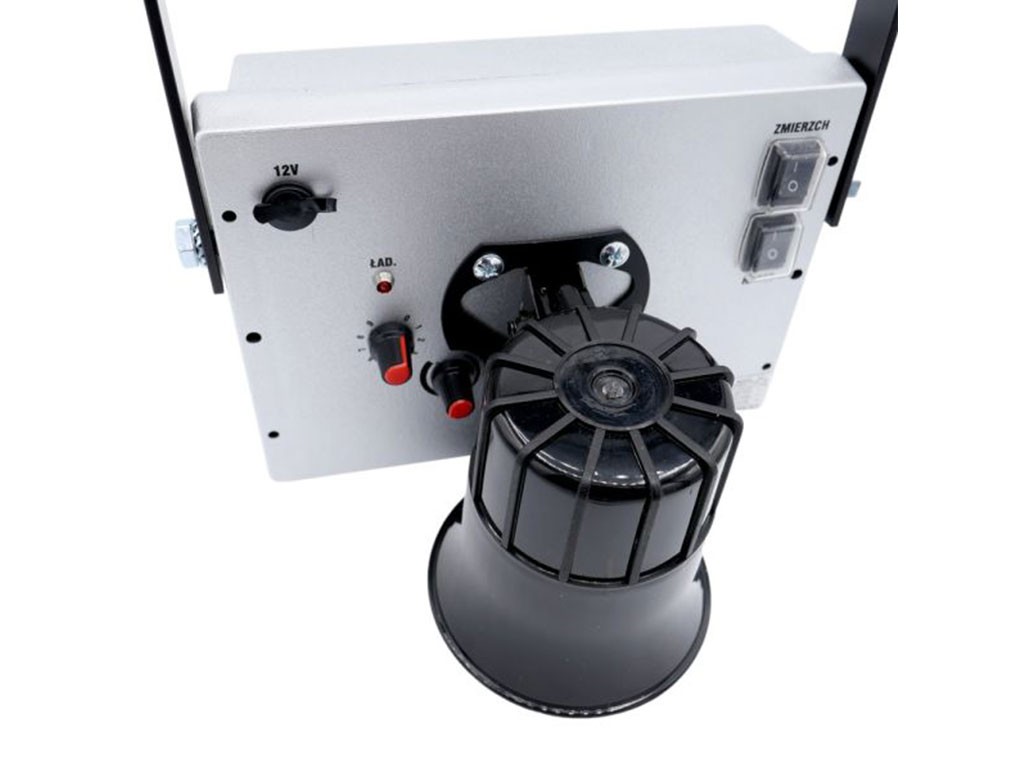 Odstraszacz dźwiękowy dzikich zwierząt , zasilany z sieci 230 V lub akumulatora 12 V, chroni obszar do 7000 m2 , odtwarza bardzo głośne dźwięki, wbudowany wzmacniacz mocy, radarowy czujnik ruchu , stopień ochrony IP44, tryb zmierzchowy, zdalne sterowanie urządzeniem, różne tryby pracy, wymiary 22,5 x 16 cm.