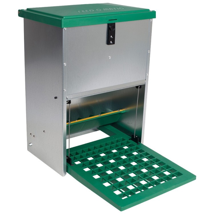 Podczas korzystania z podajnika Feed-o-matic, dostęp do paszy jest możliwy tylko wtedy, gdy kura stoi na schodku. Szkodniki, takie jak gryzonie czy ptaki, nie mają dostępu do paszy, a tym samym nie mogą zanieczyścić ziarna. Feedomatic chroni drób przed niebezpiecznymi chorobami. Podajnik schodkowy jest stabilny, łatwy do czyszczenia i odporny na zachlapanie.