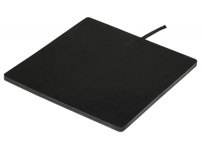 Elektryczna mata grzewcza do poideł lub misek na wodę , zapobiegająca zamarzaniu wody pitnej , wysoka odporność na wilgoć IPx7 , zasilanie 24 V bezpośrednio z sieci , zużycie 18 W/h , wymiary: 24 x 24 x 0,7 cm.