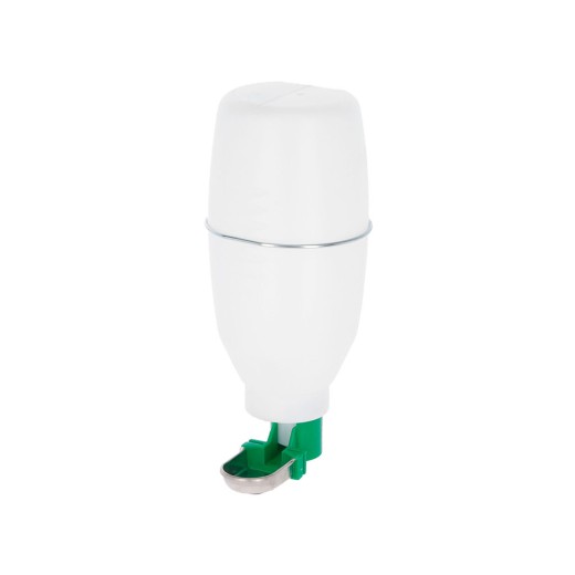 Poidło dla królika , do łatwego zawieszenia , ze stalowym poidłem, przezroczystym plastikowym pojemnikiem, pojemność 2 l, wymiary poidła 5,5 x 4 cm, wysokość poidła 27 cm, średnica poidła 12 cm.