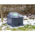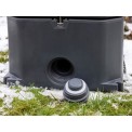 Zalecamy montaż podajnika kulowego zgodnie z instrukcją, co zapewni jego prawidłowe funkcjonowanie zarówno w miesiącach zimowych, jak i letnich. Podajnik kulowy został zaprojektowany tak, aby nie wymagał podłączenia do sieci elektrycznej. Temperatura wody utrzymywana jest powyżej zera dzięki przepływowi wody przez rury, ogrzewaniu geotermalnemu oraz podwójnej izolacji piankowej podajnika.