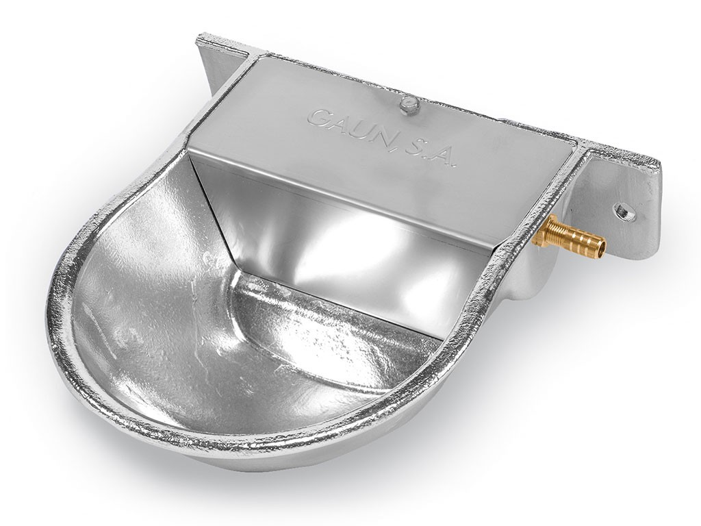 Poidło automatyczne poziomowe dla psów, owiec i kóz, z uchwytem ściennym, aluminiowe z pokrywą ze stali nierdzewnej, pływak do systemów niskociśnieniowych, podłączenie do maks. 1 zbiornika, wymiary 235x220x80 mm.