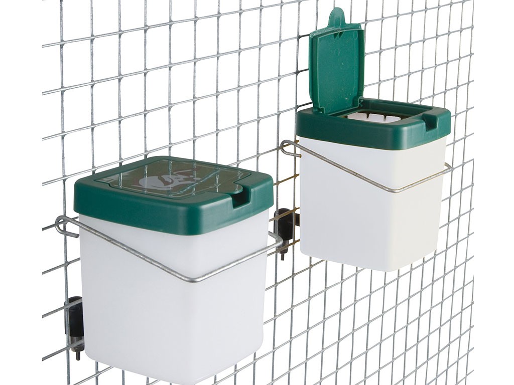 Poidło posiada zbiornik o pojemności 500 ml i uchwyt z siatki . Nadaje się dla drobiu i królików. Wymiary: 9 x 8,1 x 10,6 cm.
