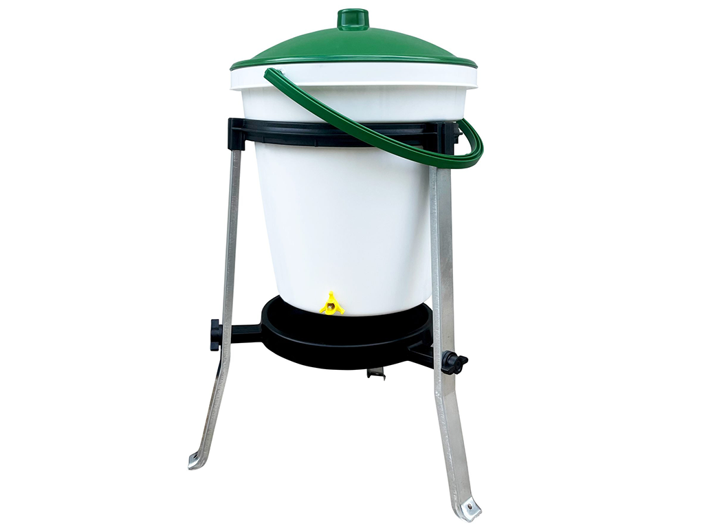 Poidło wiaderkowe dla kur, drobiu, wiadro wykonane z wysokiej jakości tworzywa sztucznego, solidna konstrukcja metalowa - nogi, łatwe w utrzymaniu, pojemność 17 l, wymiary 33x33x65,5 cm .
