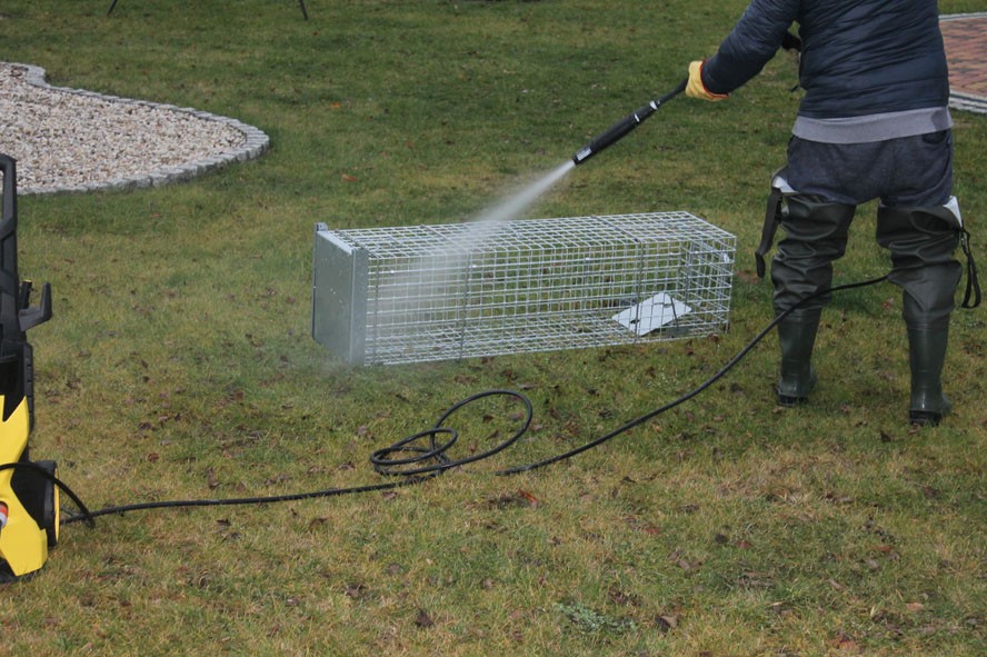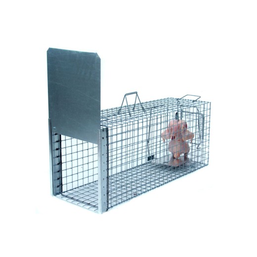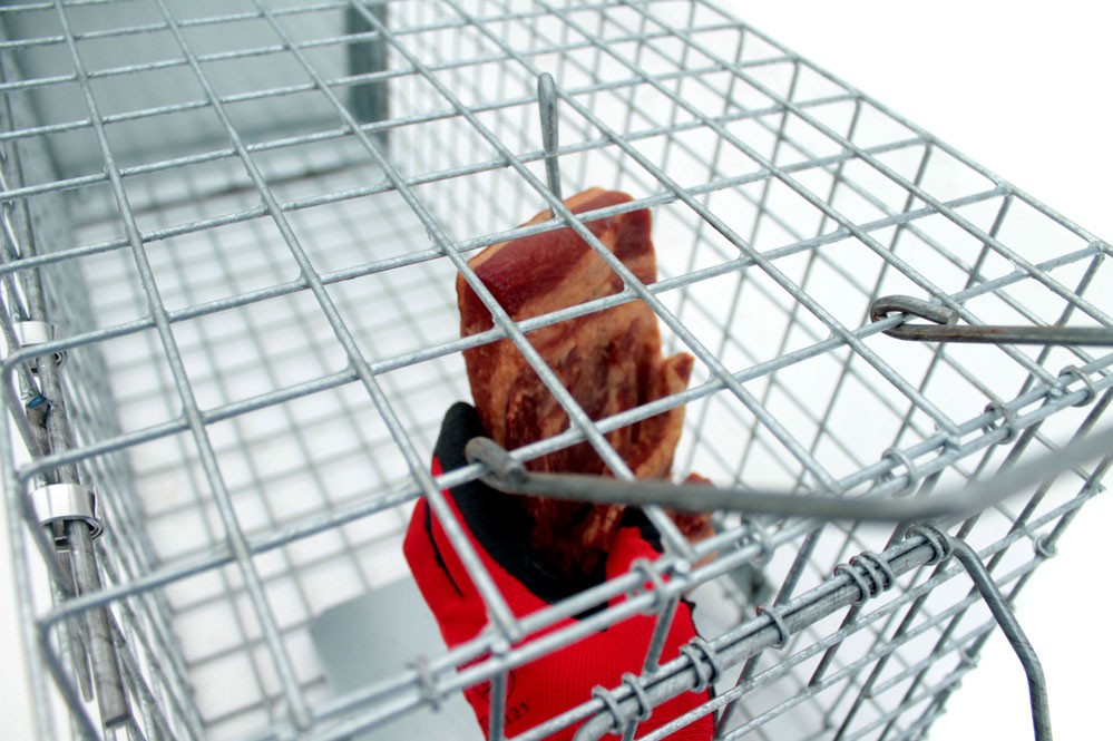 - Przynętę umieszcza się na drugim końcu pułapki, od wejścia do klatki pułapkowej.