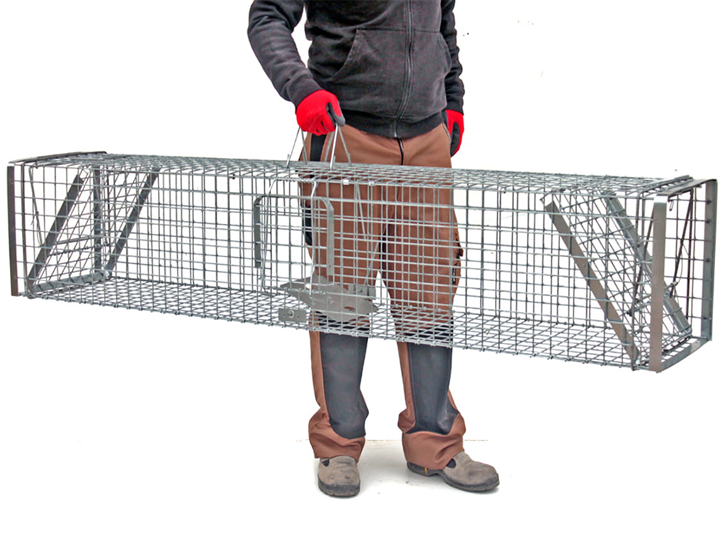 - Mechanizm pułapki działa na zasadzie mostu, który zamyka zwierzynę wewnątrz klatki