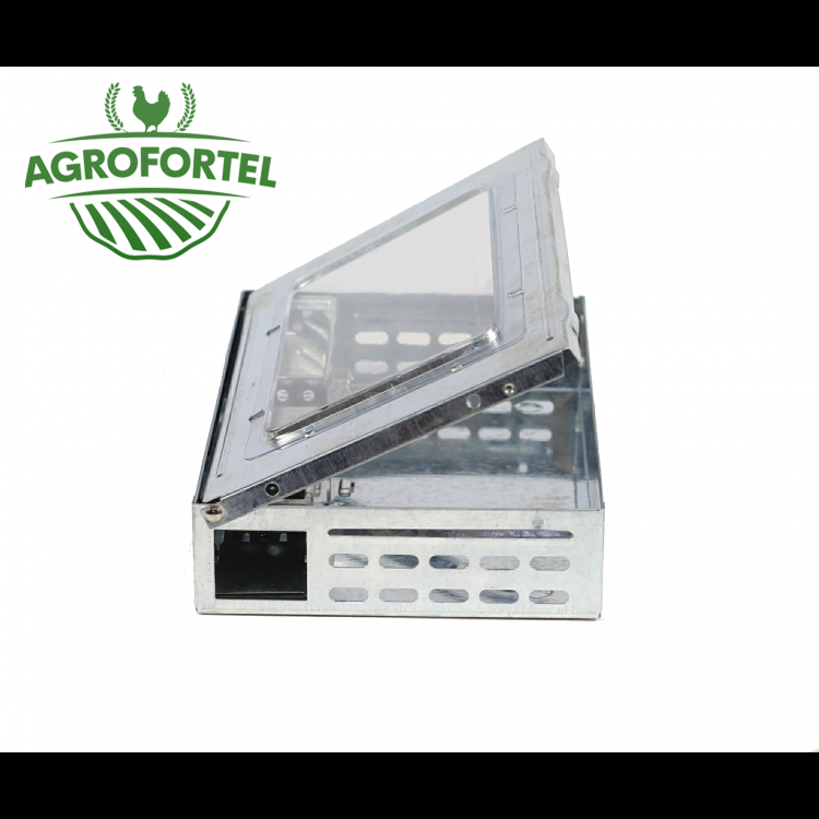 Mysz wchodzi do środka, a metalowa klapa zamyka się za nią. Przynętę umieszcza się w środku – od góry, po otwarciu pokrywy. W pułapkę można złapać jednocześnie do 20 żywych myszy. Wykonana z ocynkowanej blachy, pułapka nadaje się również do wolier lub klatek dla ptaków.