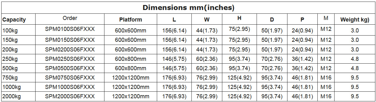 PTSSP6-F100kg~2t, czujnik jednopunktowy ze stali nierdzewnej o wymiarach 600x600mm do 1200x1200mm