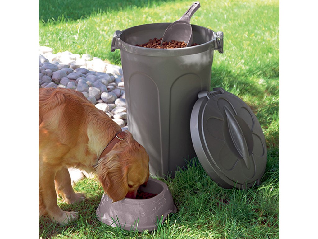 Plastikowy pojemnik na karmę dla psów i kotów o pojemności 46 l, ze zdejmowaną , szczelną pokrywą i dwoma klipsami blokującymi. Praktyczny pojemnik na karmę zapobiega jej zawilgoceniu i utrzymuje świeżość, aromat i chrupkość karmy, dzięki czemu Twoje zwierzęta będą się nią delektować od pierwszej do ostatniej porcji z każdego opakowania.