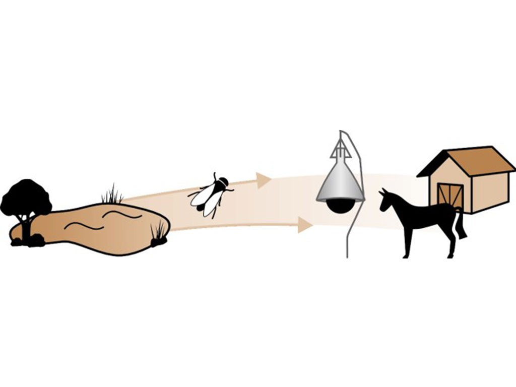 Pułapka jest wyposażona w pojemnik, do którego łapane są owady. Ważne jest, aby umieścić pułapkę na muchówki w miejscu jak najbardziej nasłonecznionym . Ciepło emitowane przez pułapkę, pochłaniające promienie słoneczne, imituje ciało stałocieplne i przyciąga muchówki oraz inne owady latające. Muchówka zbliża się do pułapki, próbuje ją użądlić , ale bezskutecznie . Zamiast tego zazwyczaj ucieka w górę . Natrafia tam na „parasol” i zostaje wciągnięta do pułapki w kształcie lejka , z której nie ma wyjścia . Pułapkę należy regularnie opróżniać . Jeśli pułapka jest umieszczona w miejscu, gdzie muchówki występują częściej, można to robić co 2-3 godziny.