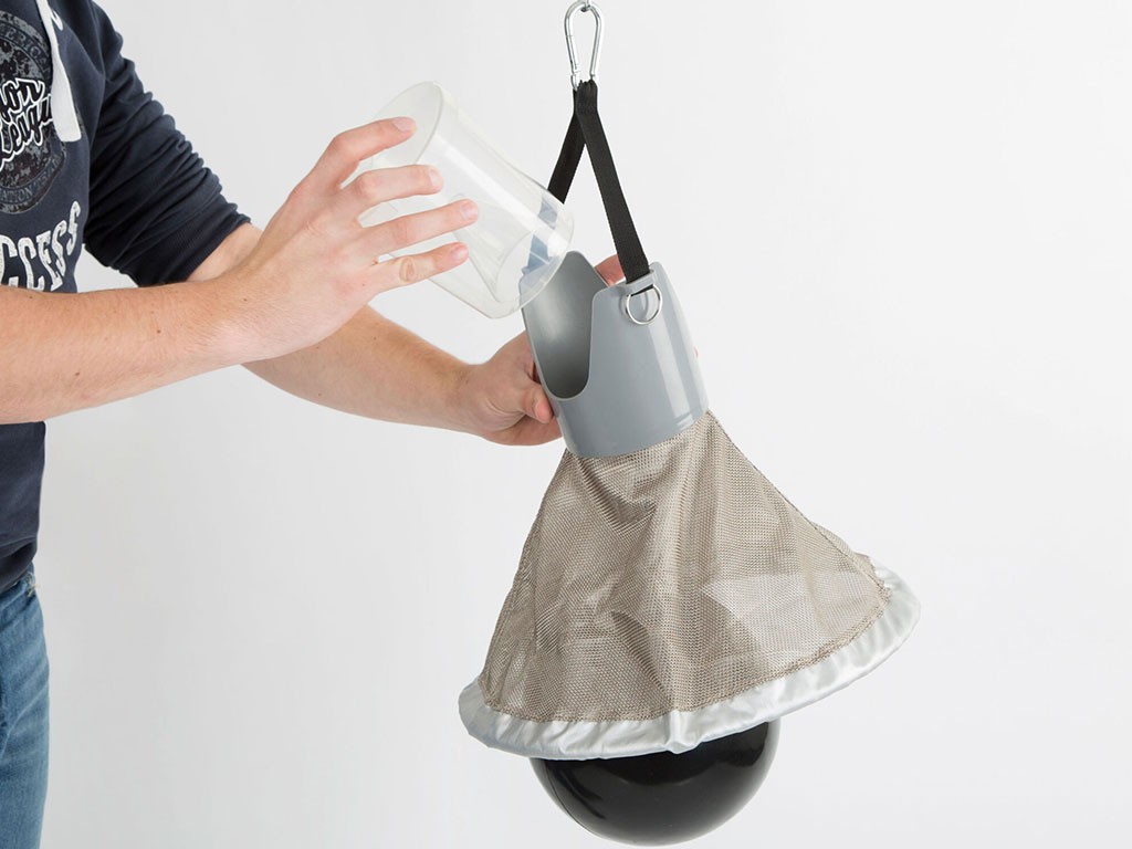 Pułapka jest wyposażona w pojemnik, do którego łapane są owady. Ważne jest, aby umieścić pułapkę na muchówki w miejscu jak najbardziej nasłonecznionym . Ciepło emitowane przez pułapkę, pochłaniające promienie słoneczne, imituje ciało stałocieplne i przyciąga muchówki oraz inne owady latające. Muchówka zbliża się do pułapki, próbuje ją użądlić , ale bezskutecznie . Zamiast tego zazwyczaj ucieka w górę . Natrafia tam na „parasol” i zostaje wciągnięta do pułapki w kształcie lejka , z której nie ma wyjścia . Pułapkę należy regularnie opróżniać . Jeśli pułapka jest umieszczona w miejscu, gdzie muchówki występują częściej, można to robić co 2-3 godziny.