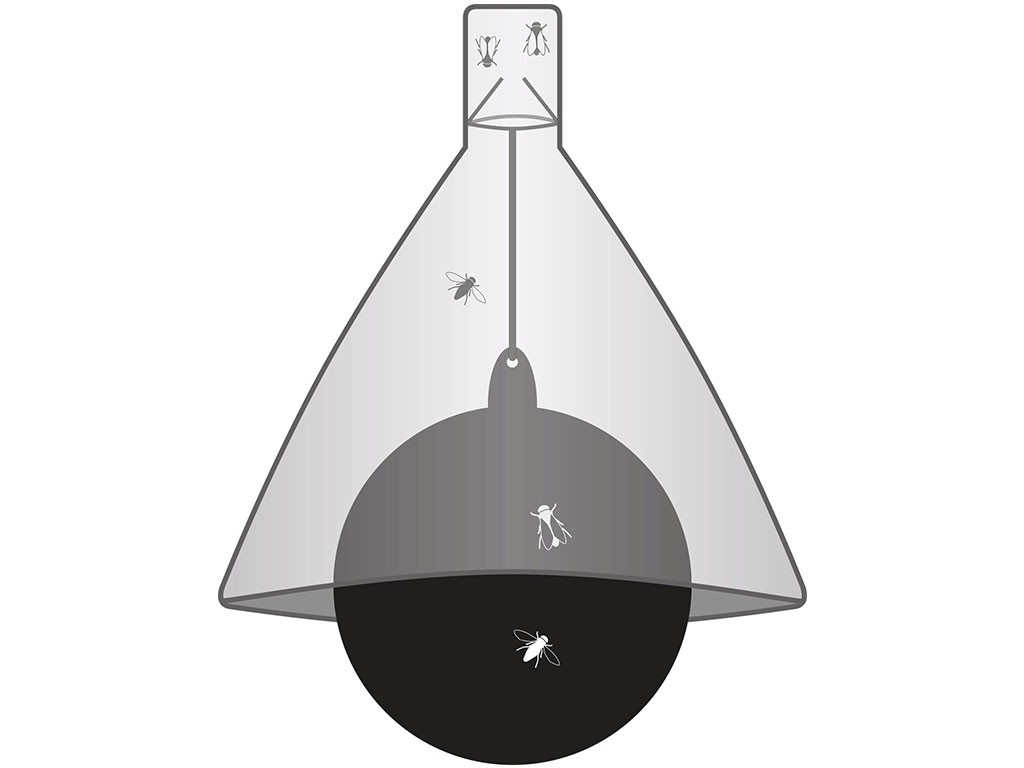 Pułapka jest wyposażona w pojemnik, do którego łapane są owady. Ważne jest, aby umieścić pułapkę na muchówki w miejscu jak najbardziej nasłonecznionym . Ciepło emitowane przez pułapkę, pochłaniające promienie słoneczne, imituje ciało stałocieplne i przyciąga muchówki oraz inne owady latające. Muchówka zbliża się do pułapki, próbuje ją użądlić , ale bezskutecznie . Zamiast tego zazwyczaj ucieka w górę . Natrafia tam na „parasol” i zostaje wciągnięta do pułapki w kształcie lejka , z której nie ma wyjścia . Pułapkę należy regularnie opróżniać . Jeśli pułapka jest umieszczona w miejscu, gdzie muchówki występują częściej, można to robić co 2-3 godziny.
