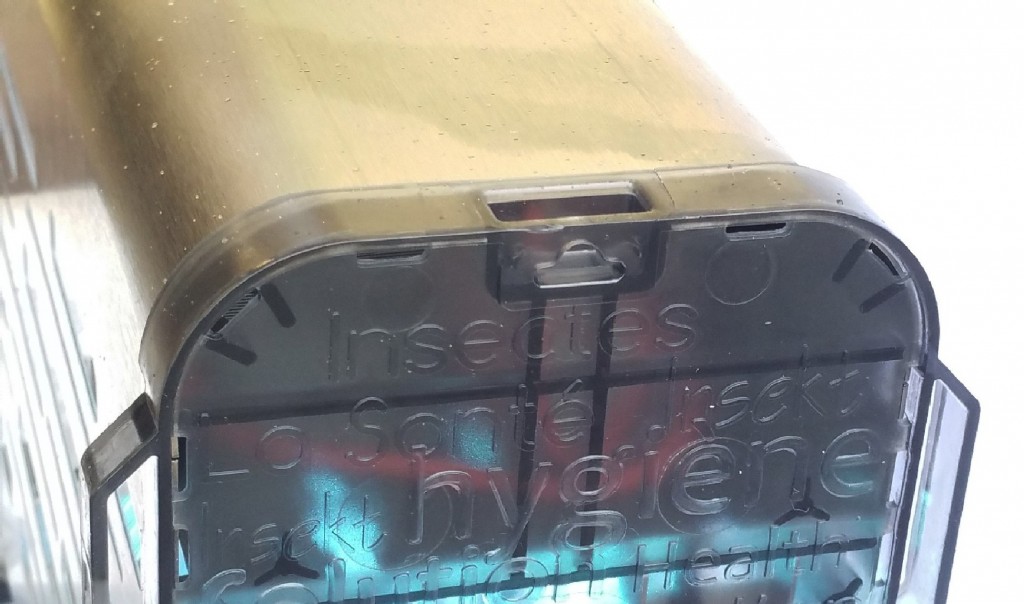 Po zabiciu owady wpadają do podłużnej miski znajdującej się na dnie urządzenia. Miskę można łatwo wyjąć i opróżnić.
