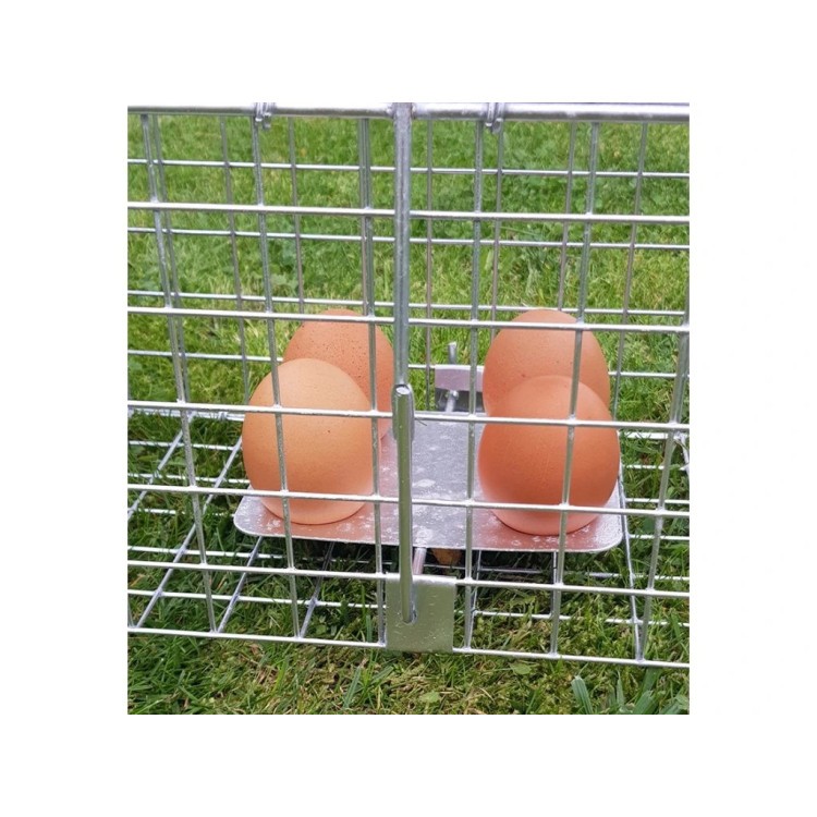 Przynętę umieszcza się po przeciwnej stronie pułapki niż drzwi wejściowe . Dzięki mechanizmowi spustowemu, przynętę można wygodnie umieścić, np. w jajach, w przygotowanych otworach. Drzwi wejściowe umożliwiają łatwy dostęp do umieszczenia przynęty.
