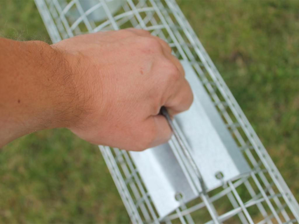 - Mechanizm pułapki opiera się na systemie mostkowym, który zamyka zwierzę wewnątrz klatki. Nie trzeba go w żaden sposób zabezpieczać – można go otworzyć tylko wtedy, gdy zwierzę wchodzi do środka.