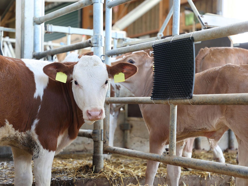 Gumowa skrobaczka z miękkimi i elastycznymi wypustkami jest odpowiednia dla zwierząt o wrażliwej skórze, takich jak cielęta i młode zwierzęta, a także konie.