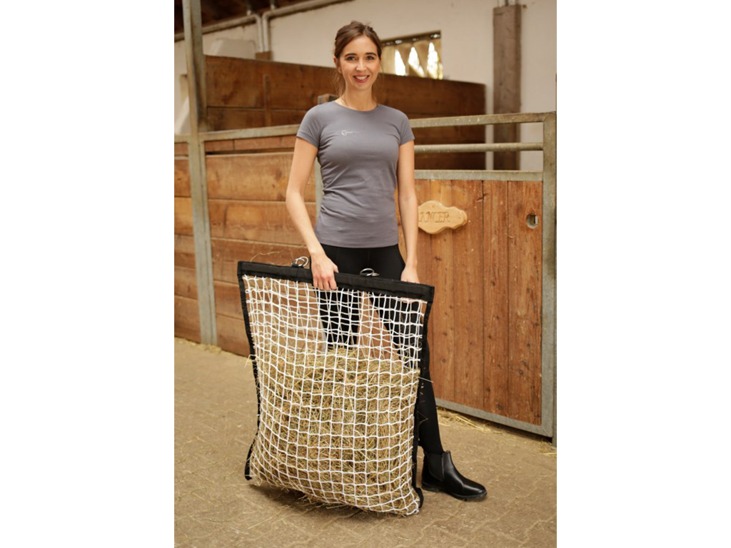 Siatka na siano , wymiary oczek 3x3 cm , wykonana z wyjątkowo wytrzymałego materiału, rzep zapobiegający przypadkowemu otwarciu, praktyczny haczyk do zawieszania, udźwig 5,5 kg, wymiary 83x83 cm .