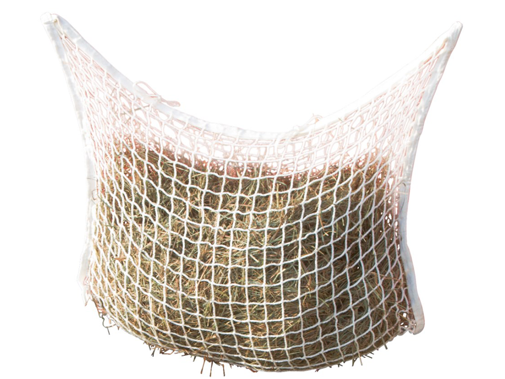 Siatka na siano , rozmiar oczek 3x3 cm , wyjątkowo odporna na rozdarcia , odpowiednia dla kucyków i przyczep, wspomaga prawidłowe karmienie, do 30% mniej marnowania paszy, pojemność 4 kg, wymiary 90x60 cm .