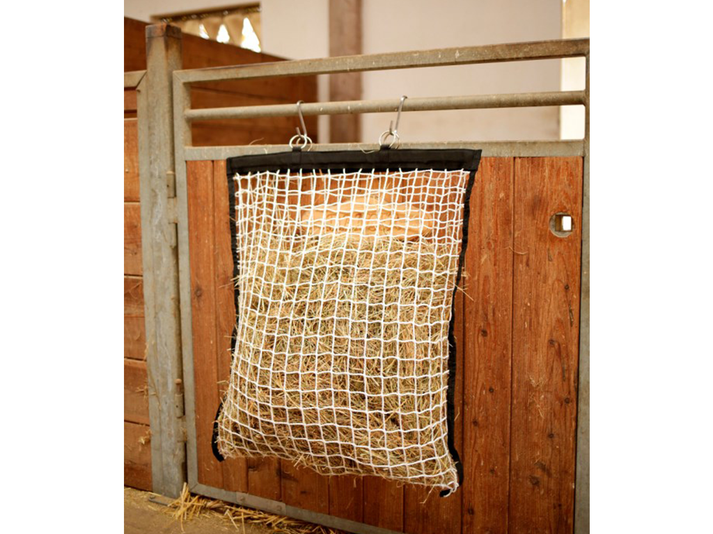 Siatka na siano , wielkość oczek 3x3 cm , wykonana z wyjątkowo wytrzymałego materiału, rzep zapobiegający przypadkowemu otwarciu, praktyczny haczyk do zawieszania, udźwig 8 kg, wymiary 90x110 cm .