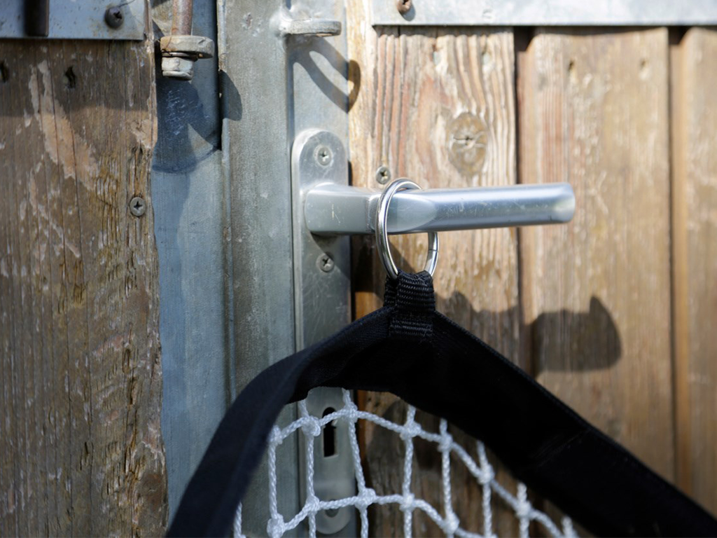 Siatka na siano , wymiary oczek 3x3 cm , wykonana z wyjątkowo wytrzymałego materiału, rzep zapobiegający przypadkowemu otwarciu, praktyczny haczyk do zawieszania, udźwig 12 kg, wymiary 100x150 cm .