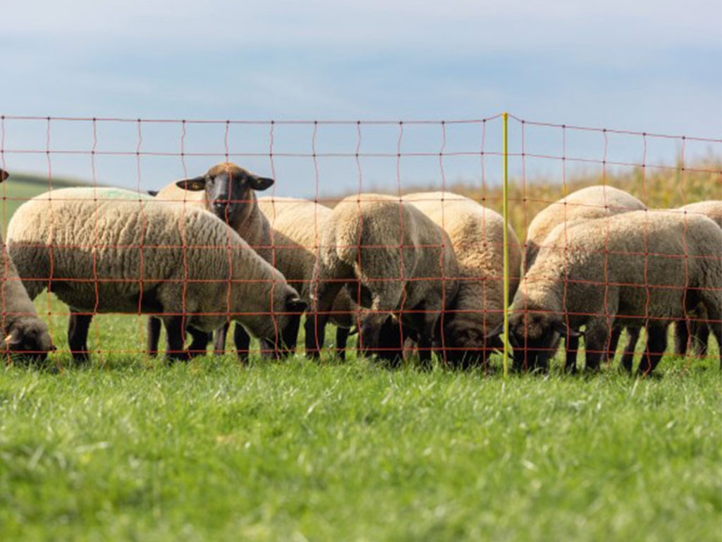 Siatka przewodząca do ogrodzeń elektrycznych , specjalnie zaprojektowana do bezpiecznego i skutecznego ogrodzenia dla owiec.