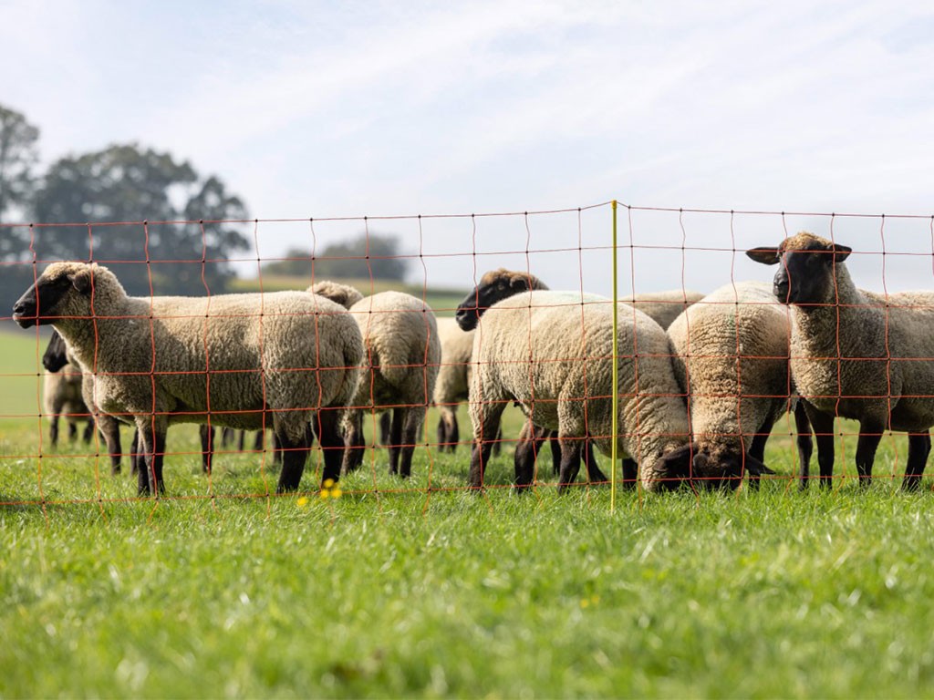 Siatka przewodząca do ogrodzeń elektrycznych , specjalnie zaprojektowana do bezpiecznego i skutecznego ogrodzenia dla owiec.
