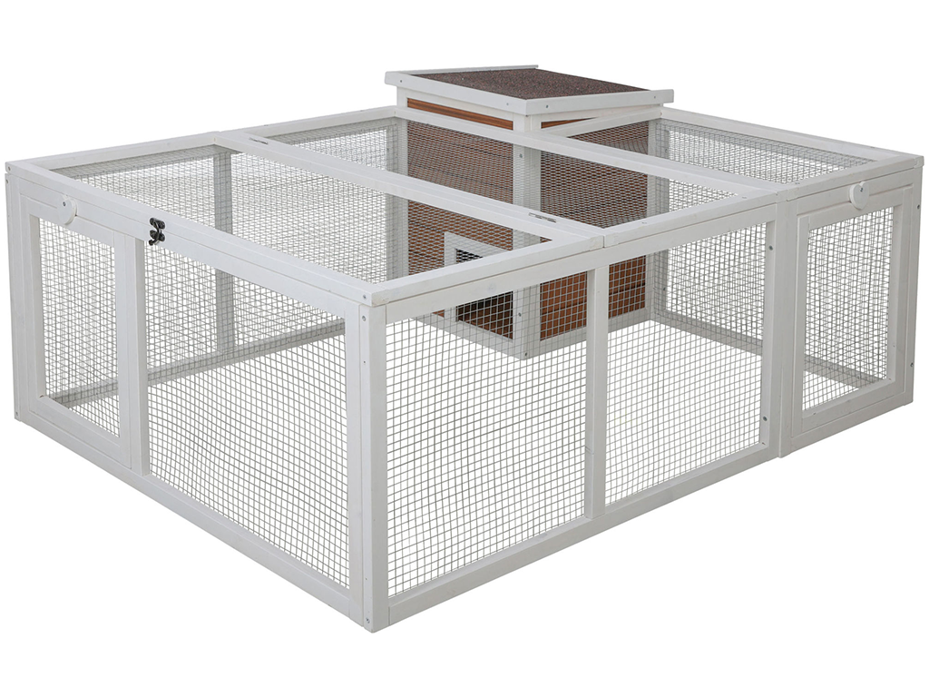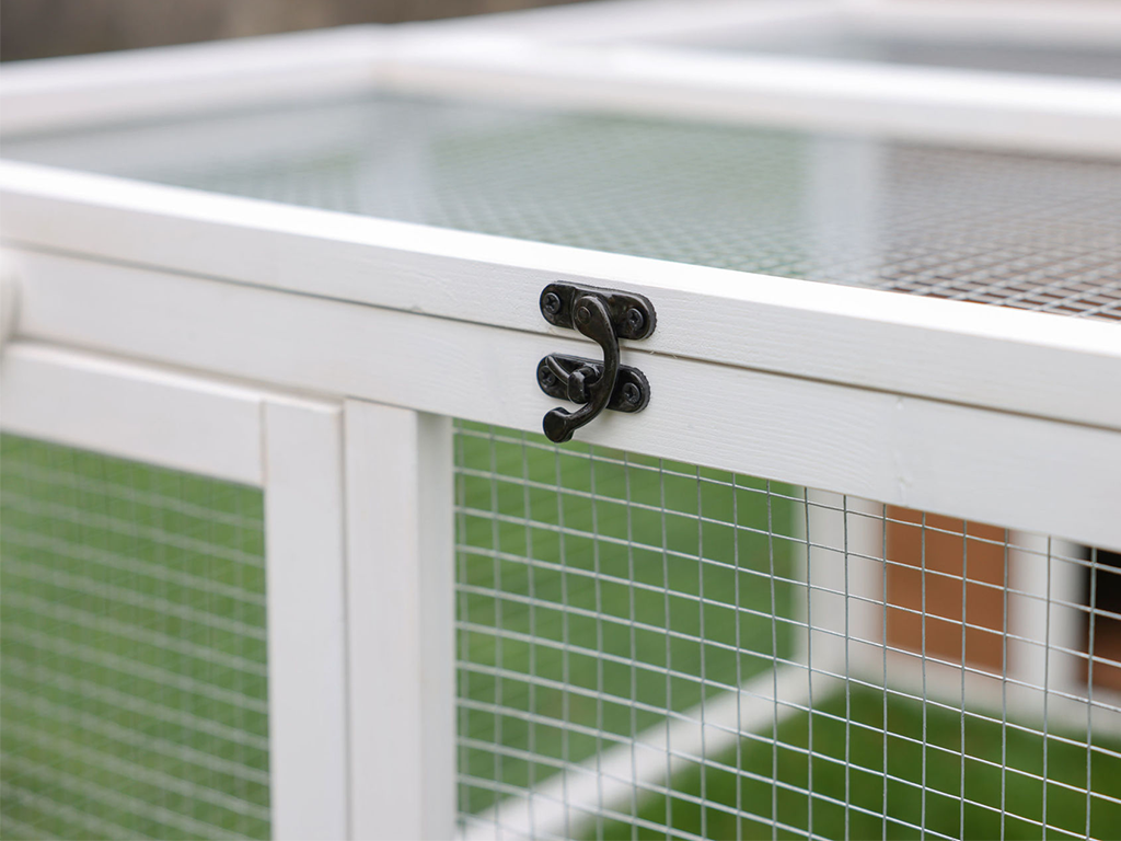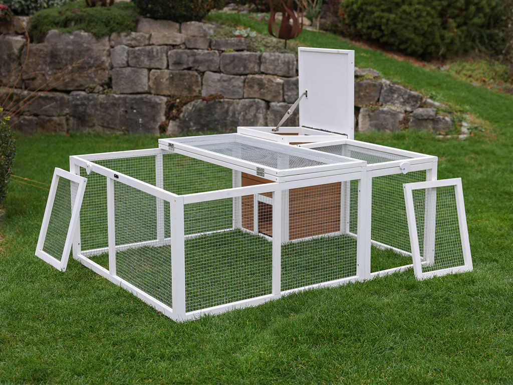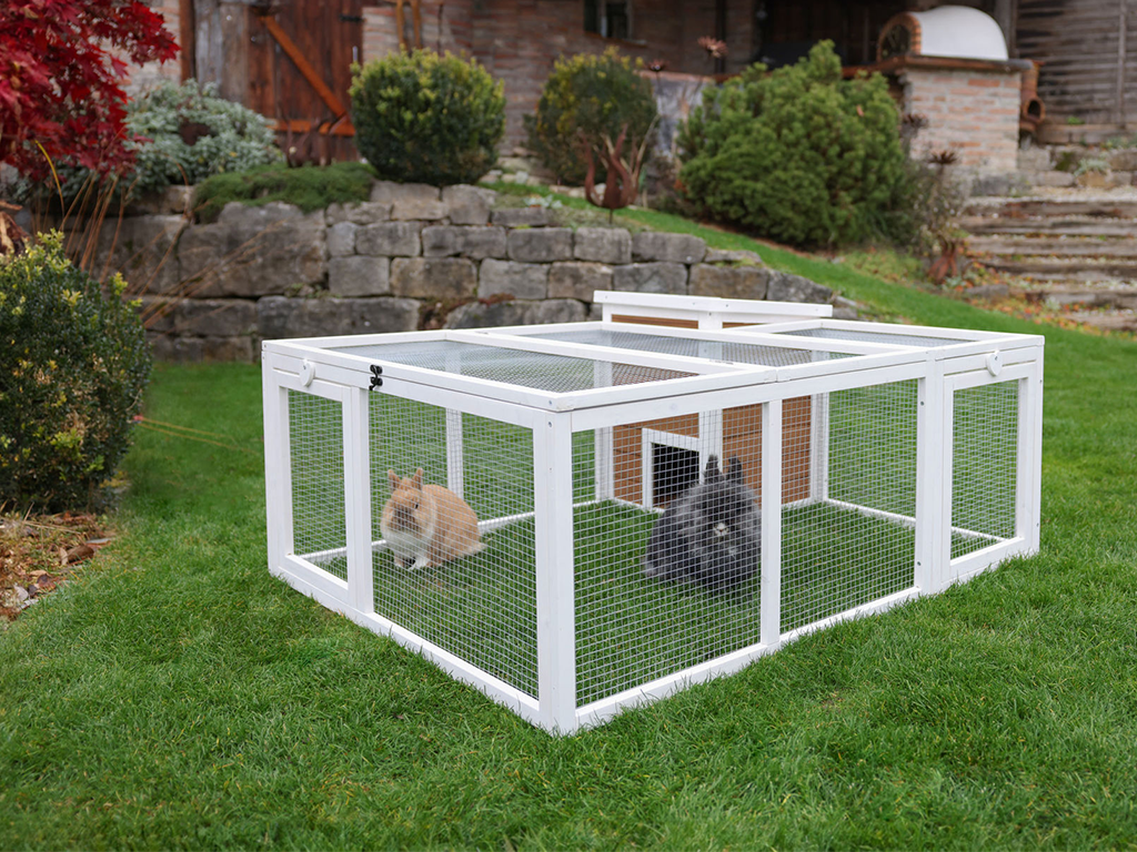 Wybieg zapewni Twoim królikom pełen komfort i bezpieczeństwo , a także swobodę na łonie natury. Istnieje również możliwość zbudowania domku, w którym Twój pupil będzie mógł się schować, na przykład przed deszczem. Będziesz mieć łatwy dostęp do swojego pupila przez dwoje drzwi i przez górną część wybiegu. Ściany i dach wybiegu Zapobiegają wyskakiwaniu zwierząt i zapewniają ochronę przed nieproszonymi gośćmi , takimi jak drapieżniki, koty czy kuny.