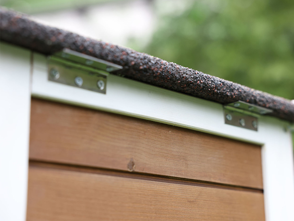 Obudowa wykonana jest z drewna i Waży około 16 kg. Dach zadaszenia nad domem jest odporny na niekorzystne warunki atmosferyczne. Zalecamy jednak, aby zadaszenie było zabezpieczone przed deszczem, śniegiem i intensywnym nasłonecznieniem. Drewniana obudowa jest zabezpieczona podstawową powłoką ochronną. Aby przedłużyć jej żywotność , jak w przypadku każdego drewna, konieczne jest odnawianie powłoki ochronnej .